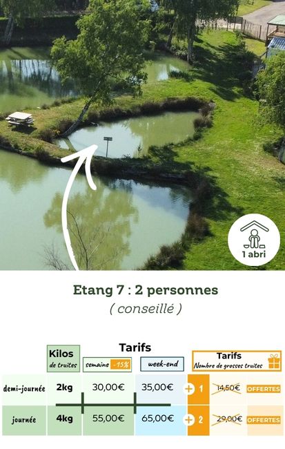 - Étangs privatisables : Offrez-vous une expérience sur mesure en réservant un étang entier pour vous et votre groupe. Idéal pour les familles, les amis ou les événements d’entreprise, cette formule garantit tranquillité et exclusivité. Des offres spéciales incluent de grosses truites offertes pour encore plus de plaisir.